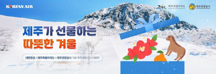 [한라일보] 제주도와 제주관광공사는 대한항공과 함께 '제주가 선물하는 따뜻한 겨울' 이벤트를 진행한다고 12일 밝혔다.