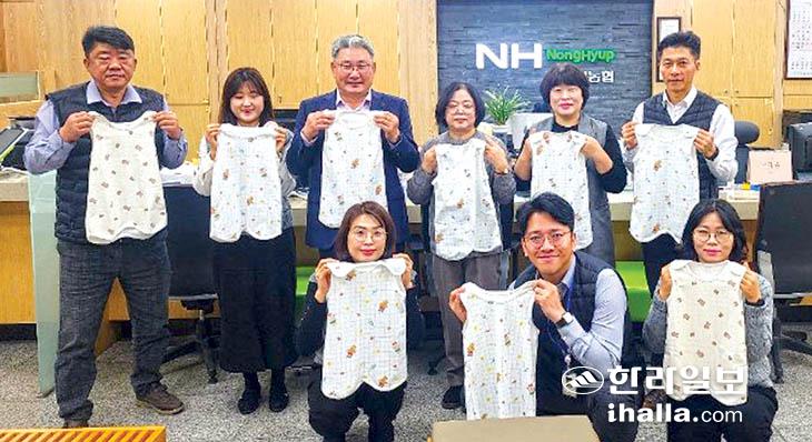 제주시농협(조합장 고봉주) 동부그룹 관내 4개 지점(동화로·봉개·삼양·화북)은 지난 16일 (사)더함께새희망에서 취약계층 영유아를 위한 수면조끼 만들기 캠페인을 벌이고, 직원들이 손수 제작한 수면조끼와 생필품을 홍익영아원에 기부했다.