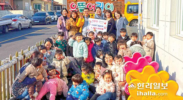 서귀포시 서홍동 소재 으뜸어린이집(원장 현해정)은 지난 16일 어려운 이웃을 위해 사용해 달라며 원아, 교직원, 학부모들이 운영한 '으뜸장터'의 수익금 148만 5000원을 서홍동지역사회보장협의체(위원장 오희경·변정철)에 기탁했다.