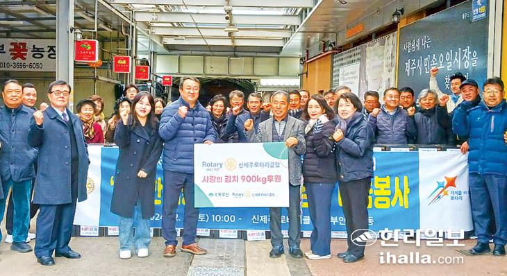 국제로타리3662지구 신제주 로타리클럽(회장 담운 고창호)과 부인회(회장 문순애)는 지난 14일 제주시 민속오일시장에서 사랑의 김장 나눔봉사를 진행하고 김장김치 900㎏를 초록우산 제주지역본부(본부장 변정근)를 통해 전달했다.