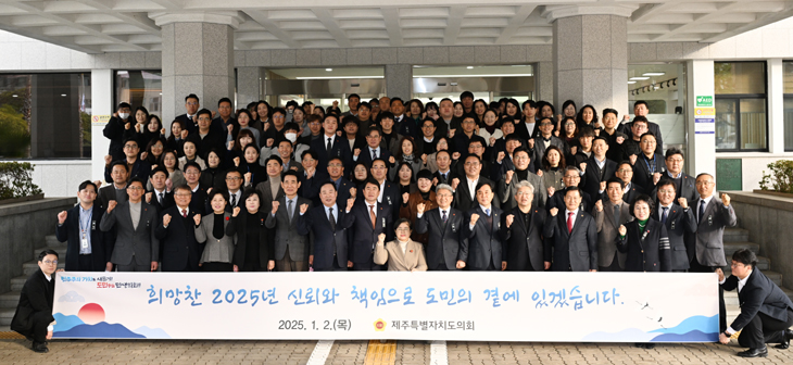 제주특별자치도의회(의장 이상봉)는 2일 오전 9시 의사당 도민카페에서 2025년 을사년의 업무 시작을 알리는 시무식을 개최했다.
