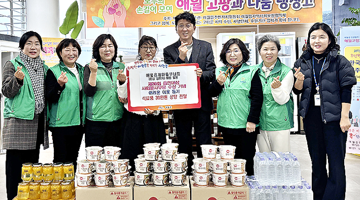 제주시 애월읍새마을부녀회(회장 강미숙) 회원 일동은 지난 8일 애월읍사무소(읍장 김기완)를 방문해 제30회 읍민대상 사회봉사 부문 수상을 기념해 어려운 이웃을 돕기 위한 30만원 상당의 식료품을 전달했다.