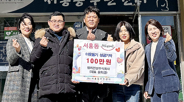 탐라전설(주)(대표이사 윤희금)는 지난 9일 지역 내 어려운 이웃을 위해 사용해 달라며 서귀포시 서홍동지역사회보장협의체(위원장 오희경·변정철)에 100만원의 성금을 기탁했다.