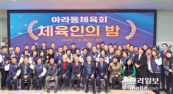 제주시 아라동체육회(회장 문석희)는 지난 16일 해리스가든연회장에서 아라동체육회 회원과 지역 내 자생단체장 등 50여 명이 참석한 가운데 '체육인의 밤' 행사를 개최했다.