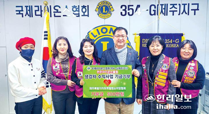 [한라일보] 한란라이온스클럽(회장 정금미)은 지난 16일 제주라이온스 지구사무국을 방문해 송채철 제주라이온스 총재와 함께 제주도백혈병소아암협회에 500만원을 기부했다.