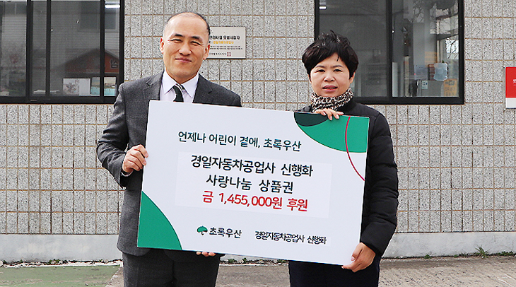 경일자동차공업사(대표 이의순·신행화)는 지난 20일 초록우산 제주지역본부(본부장 김희석)에 상품권 145만여원을 전달했다.