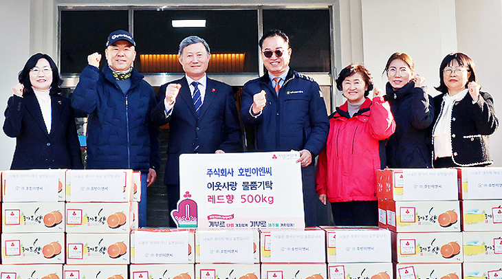 제주에 본사를 두고 있는 (주)호빈이엔씨는 지난해 설에도 제주시에 레드향(5㎏) 100상자를 기탁했다.