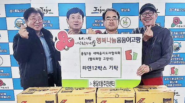 [한라일보] 제주시 용담1동새마을지도자협의회(회장 고광석)는 지난 21일 저소득가구를 위한 라면 12상자를 용담1동주민센터(동장 강재선) 이웃 후원 창고인 '통통이고팡'에 전달했다.