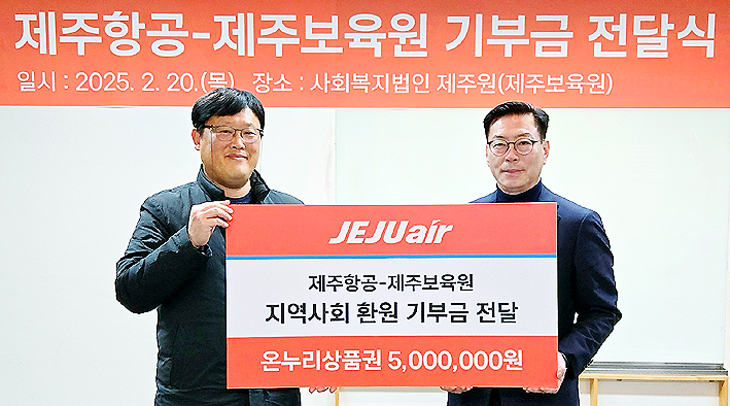 제주항공(대표이사 김이배)은 20일 지난해 환경부 주최로 열린 '2024년 녹색경영 및 녹색금융 우수기업 시상식'에서 환경부 장관상을 수상하며 받은 상금 전액 500만원을 제주보육원에 기부했다.