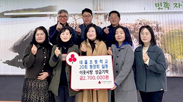 제주 대흘초등학교 제20회 동창회는 지난 21일 제주시 조천읍사무소를 방문해 지역 내 조손가정에 도움을 주고자 성금 270만원을 기탁해 이웃사랑을 실천했다.