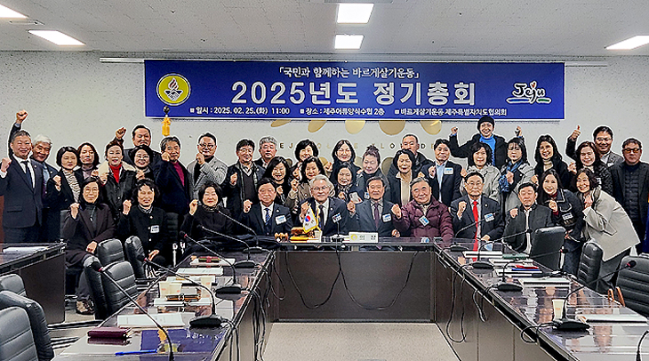 바르게살기운동 제주특별자치도협의회(회장 좌중언)는 지난 25일 제주어류양식수협 대회의실에서 대의원 50여 명이 참여한 가운데 2025년도 정기총회를 개최했다.