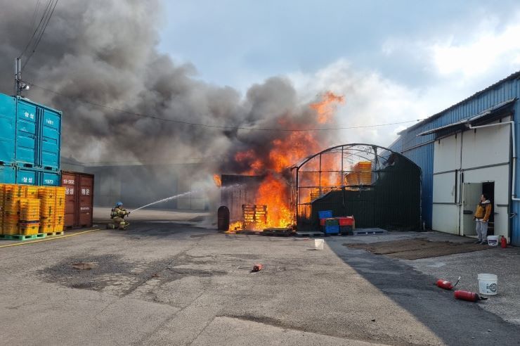 18일 서귀포시 서홍동 소재 선과장에서 화재가 발생했다. 제주도소방안전본부 제공