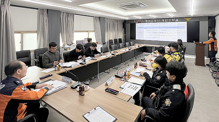 이번 회의는 소방차 진입이 어려운 지역에서의 골든타임을 확보 방안 등 원활한 소방활동을 위한 대책이 논의됐으며, 자치경찰, 행정시 등 유관기관도 함께했다.