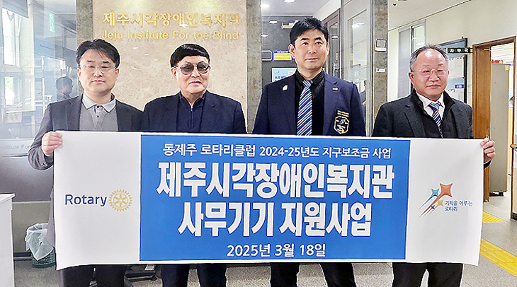 동제주로타리클럽(회장 김명식)은 18일 제주시각장애인복지관(관장 양예홍)에 200만원 상당의 사무용PC 등 사무기기를 후원했다. 양예홍 관장은 "후원을 통해 시각장애인들에게 보다 나은 서비스를 제공할 수 있도록 최선을 다하겠다"며 감사의 마음을 전했다.