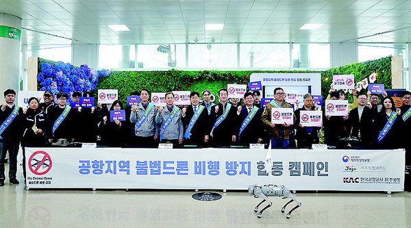 [한라일보] 한국공항공사(사장직무대행 이정기) 제주공항은 18일 국내선 출발장에서 제주도청, 제주지방항공청, 제주지방경찰청과 합동으로 불법드론의 위험성을 알리고, 안전하고 합법적인 드론 비행 홍보를 위한 대국민 '불법드론 방지 캠페인'을 실시했다.