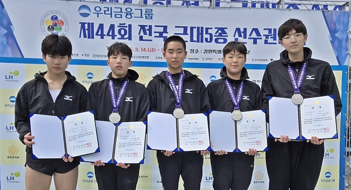 왼쪽부터 근대3종신현규, 근대2종 김재현, 정태율, 김준환, 박지환. 제주근대5종연맹 제공