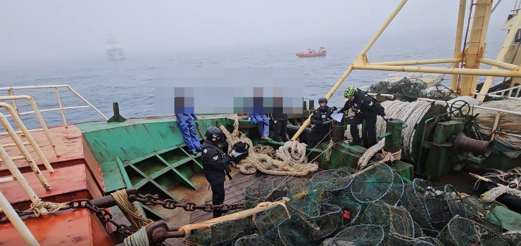 서귀포 해상에서 허용되지 않은 어구를 적재해 불법조업하던 중국 어선 1척이 해경에 적발됐다. 서귀포해경 제공