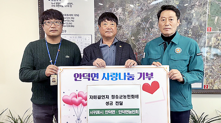 서귀포시 안덕면(면장 김태유)과 안덕면농민회(회장 이종훈)는 최근 산불 피해를 입은 자매결연지 청송군농민회에 성금을 전달했다. 안덕면농민회와 청송군농민회는 2023년 6월 29일 자매결연 후 지속적인 교류와 협력을 이어오고 있다.