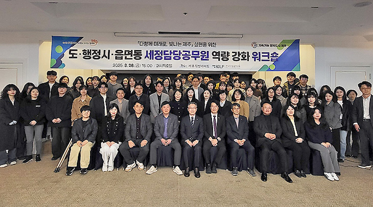 이날 워크숍에는 도·행정시·읍면동 세정담당 공무원 100여 명이 한자리에 모여 적극적인 세원 관리를 통한 자주 재원 확충, 인공지능(AI)·디지털 기반 지방세·세외수입 시스템 전환 추진, 도민 생활 안정 세제 지원 등 세정 업무 발전 방향을 논의했다.