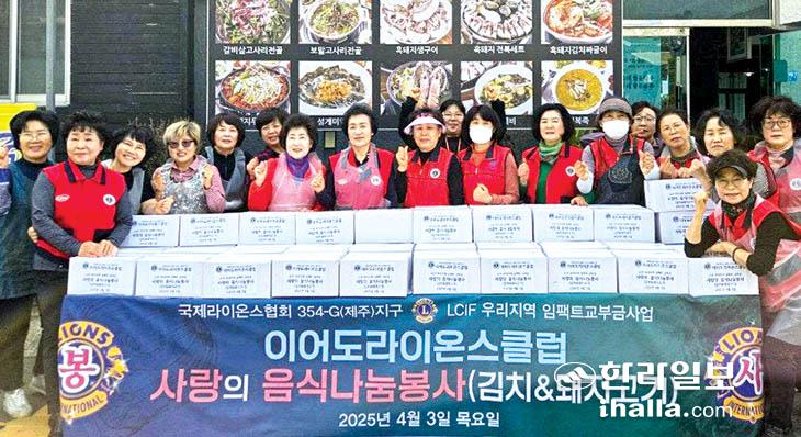 이어도라이온스클럽(회장 오의숙)은 지난 3일 회원 30여 명과 함께 김치를 버무리고 돼지고기와 함께 서귀포 장애인복지관, 정혜재활원, 자광원, 남제주 주간보호센터, 제남아동복지센터에 전달하는 나눔 활동을 펼쳤다.