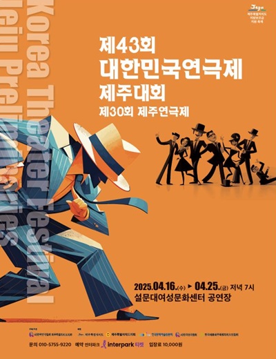 국내 연극계 최고 축제인 제43회 대한민국연극제의 제주 예선대회를 겸한 올해 연극제에는 총 4개 작품이 무대에 오른다. 16일 예술공간 오이의 '괴', 18일 퍼포먼스단 몸짓의 '만선', 23일 극단 세이레의 '오사카에서 온 편지', 25일 극단 가람의 '인생배달부' 등 4개 극단이 다채로운 창작극을 선보인다.
