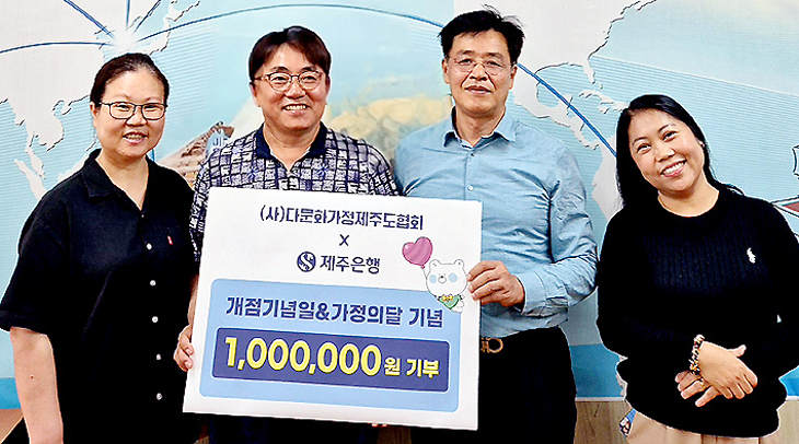 제주은행(은행장 이희수)은 최근 제주시 사라봉축구장에서 오는 8일 열릴 예정인 '제15회 제주도 다문화가정 한마음 체육대회'에 후원금 100만원을 전달했다.