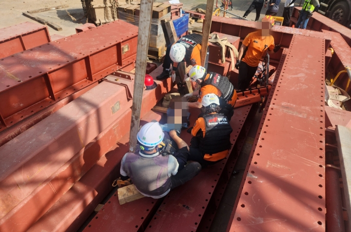 이날 오후 4시 28분쯤 제주시 연동의 한 주상복합 신축공사장에서 40대 남성 A씨가 중상을 입었다. 제주소방안전본부 제공