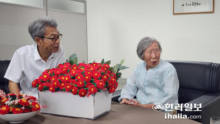 [한라일보] 10대 때 겪은 제주4·3의 기억을 평생 안고 살아온 90대 여성이 손뜨개질로 만든 동백꽃을 제주4·3평화재단에 기증했다.