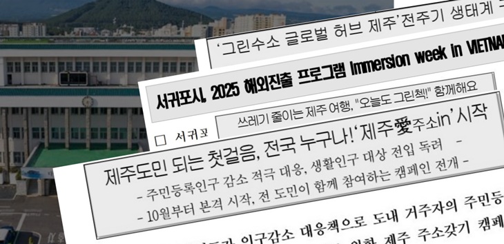 정책에 대한 도민 이해도를 높일 수 있도록 쉬운 우리말로 정책을 알려야 할 도내 공공기관이 공공언어인 보도자료에 외국어와 외래어, 한글과 외국문자의 혼용이 자주 나타나고 외국글자만으로 표기하거나 어려운 단어를 사용하는 사례가 여전히 반복되고 있어서다. 공공기관에서 직접 이름 붙인 각종 사업명, 행사명, 기관명, 표어 등 보도자료 속 정책명을 더 들여다보면 이러한 부분들이 두드러진다. '그린수소 글로벌 허브 제주', '오늘도 그린첵!', '걷GO! 줍GO! 플로깅 캠페인', 'IoT 혁신 인재', '스토리 콘서트 On Air, peace', '청소년 DREAM프로젝트夢(몽)', '금토금토 새연쇼, Again 워터밤 개최!', '해외진출 프로그램 Immersion week in VIETNAM 운영' 등이 그 예이다.