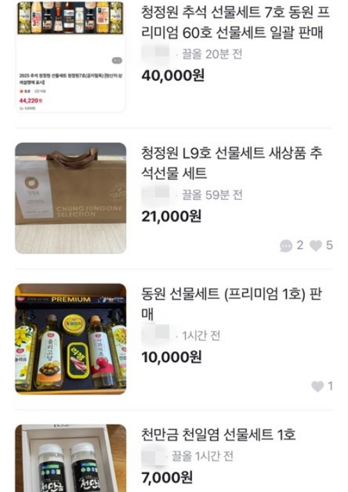 중고거래 플랫폼 당근에서 추석 선물세트가 거래되고 있다. 당근 캡쳐