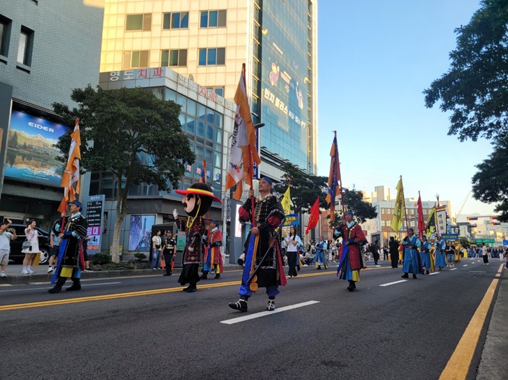 [한라일보] 11일 오후 제주시 관덕정과 중앙사거리 인근 도로에서 제64회 탐라문화제 대표 프로그램인 탐라퍼레이드가 진행되고 있다.