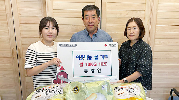 서귀포시 천지동지역사회보장협의체 류상안 위원장은 지난 10일 지역 내 어려운 이웃들을 위해 쌀 10㎏ 10포를 천지동주민센터에 기탁했다.