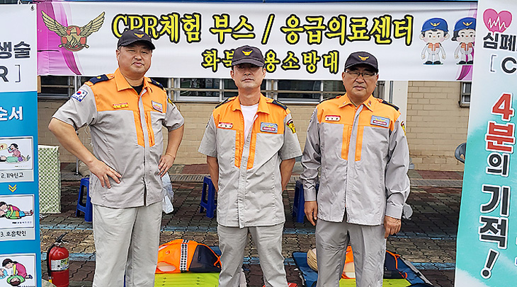 화북남성의용소방대(대장 강재천)는 지난 19일 화북동민 종합 체육대회에서 심폐소생술 부스를 운영했다.