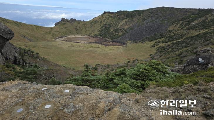 백록담 주변 지형 연구 추적표식판. 제주도 제공