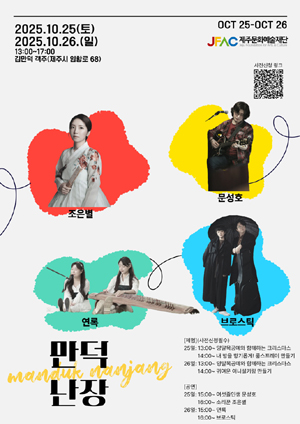 제주시 건입동에 있는 김만덕 객주에서는 이달 25일부터 26일까지 오후 1시부터 5시까지 제주문화예술재단이 진행하는 문화예술 행사 '만덕난장'이 펼쳐진다. 매년 거상 김만덕의 숭고한 나눔정신을 되새기는 문화예술 행사인 '만덕난장'은 올해에도 공연과 체험 등 다양한 프로그램을 준비한다.