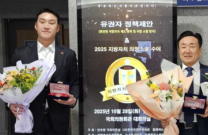 '2025 지방자치 의정대상' 광역의원 부문 대상을 수상한 김기환, 양경호 의원(왼쪽부터).