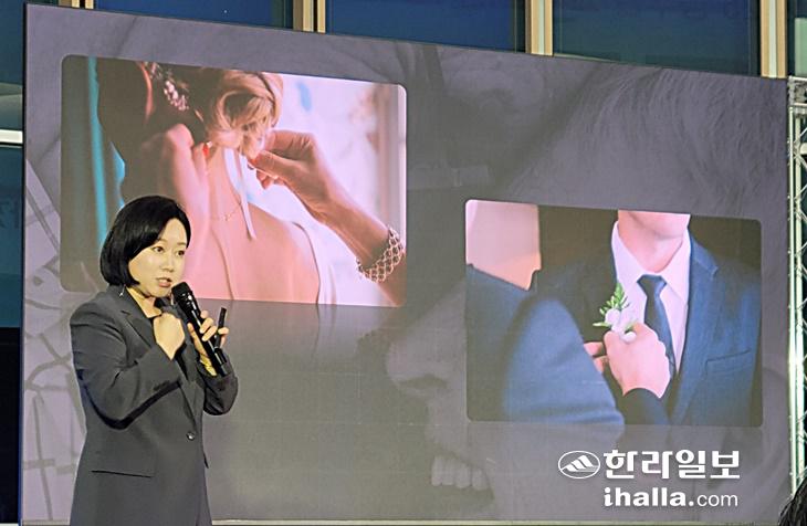 지난 30일 오후 7시 서귀포시 서호동 서귀포혁신도시 내 국토교통인재개발원 로비. 제주도와 제주문화예술재단이 주최한 '2025 문화가 있는 날-구석구석 문화배달' 사업의 10월 프로그램으로 마련된 '로비가 강연장'에서 소통전문가 김지윤 유스토리(USTORY)연구소 소장이 결혼에 대해 이같이 얘기하자 로비 의자에 모여앉은 100여 명의 강연 참석자들이 시선을 집중했다.