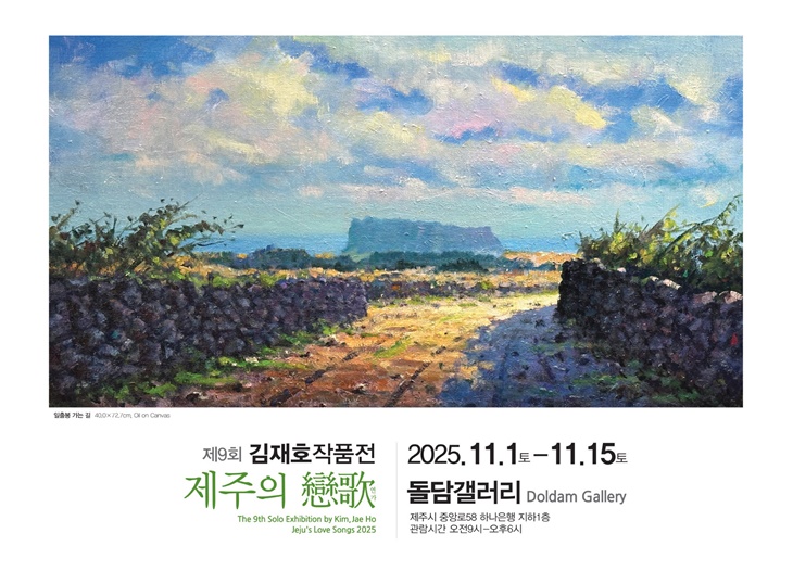 [한라일보] 제주특별자치도미술대전 초대작가인 김재호 작가의 아홉 번째 개인전 '제주의 연가(戀歌)'가 이달 15일까지 제주시 일도1동에 있는 돌담갤러리에서 열린다.
