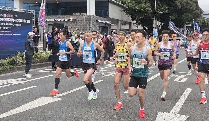 8일 평화의 섬 2025 국무총리기 국제생활체육구간마라톤대회.