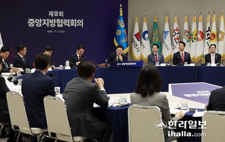 오영훈 제주지사는 12일 용산 대통령실에서 열린 제9회 중앙지방협력회의에서 이재명 대통령에게 지방재정의 과감한 확충과 제주형 포괄적 권한이양에 대한 정부 지원을 건의했다.