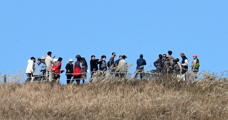 가을이 짙어가는 새별오름 찾은 관광객. 한라일보DB