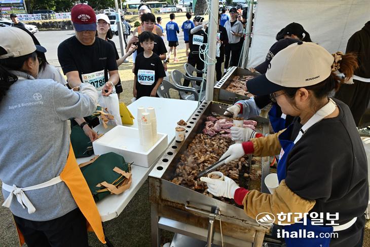 대회장 곳곳에 마련된 다양한 부대행사 부스에도 긴 줄이 늘어섰다. 먹거리를 맛보는 시식 부스는 참가자들에게 단연 인기였다. 사단법인 대한한돈협회 제주지부는 제주산 돼지고기 100㎏를 현장에서 직접 구웠고, 내년 6월 문을 여는 쉐라톤 제주 호텔은 총주방장이 직접 만든 멸치 국수 1000인분을 준비해 참가자들에게 각각 제공했다.
