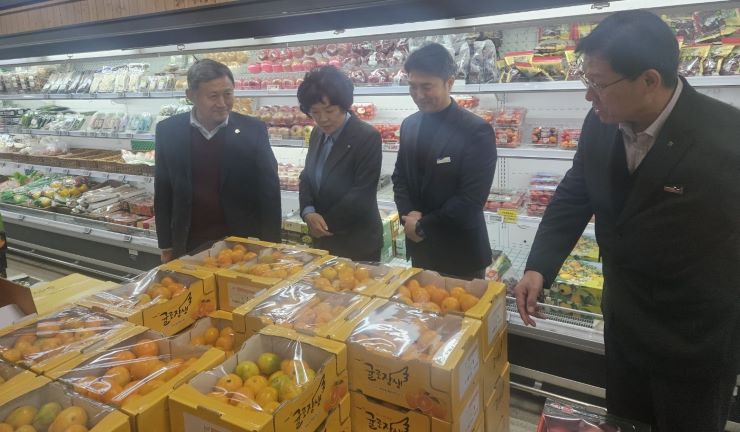 전국 소비지 농협과 제주 농산물의 직거래 협력을 논의 중인 제주시가 17~18일 경기도 김포농협 하나로마트에서 감귤 판매·홍보 행사를 선보이고 있다. 제주시 제공