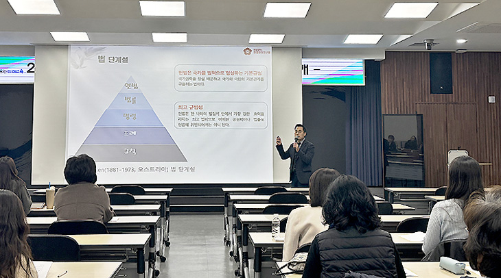 제주특별자치도교육청은 지난 18일 교육청 대회의실에서 2025 교원 대상 헌법교육 특강을 열었다.