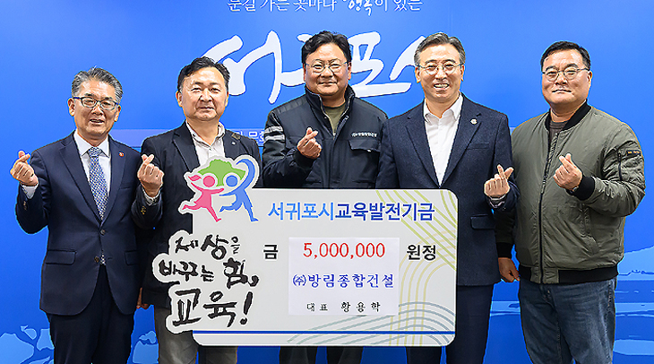 (주)방림종합건설(대표 황용학)은 지난 17일 서귀포시청 접견실에서 (재)서귀포시교육발전기금(이사장 김문수)에 교육발전기금 500만원을 기탁했다.