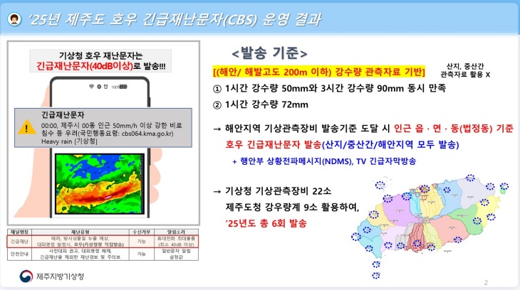 '제주도 호우 긴급재난문자 운영 결과와 겨울철 달라지는 주요 기상서비스' 주제 강연 자료 갈무리. 제주지방기상청 제공.