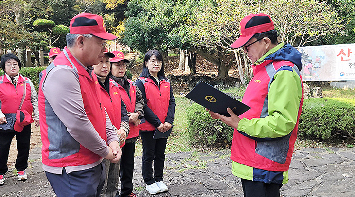 이후 창립회원 20여 명과 함께 사라봉~별도봉 일대에서 산불예방 캠페인 및 플로깅 행사를 진행했다,