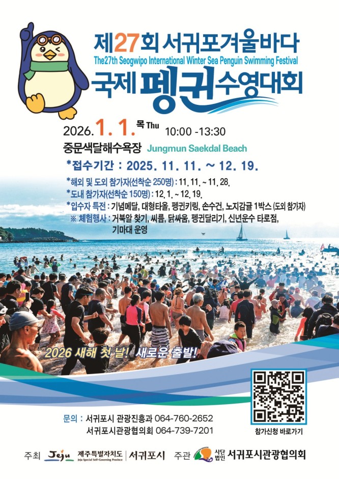 2026년 첫 날 중문색달해수욕장서 국제펭귄수영…