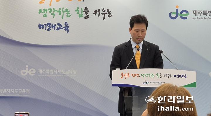 제주특별자치도교육청은 4일 오후 도교육청 기자실에서 '제주 모 중학교 교사 사망 사건 진상조사' 결과를 발표 언론 브리핑을 열었다.