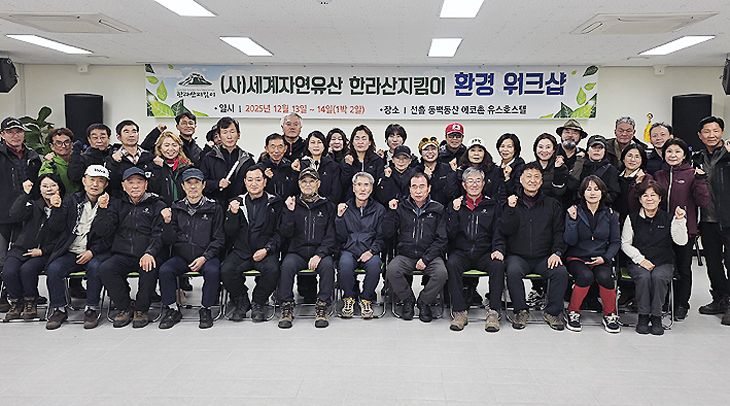 (사)세계자연유산 한라산지킴이(이사장 고성찬)는 지난 13~14일 선흘 동백동산 에코촌 유스호스텔에서 회원 40여 명이 참석한 가운데 환경 워크숍을 개최했다.